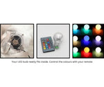 Embedded LEDs light up through the inflatable, remote control included for colours, effects and brightness control.