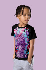 This magical toddlers and children's T-Shirt is sure to be a hit with any dragon lover! With its bright pinks, purples, and blues, you'll be sure your kiddo stands out from the crowd, making it easy for you to spot them in the playground! Plus, you won't have to worry about dragons flying away! Snag one today!