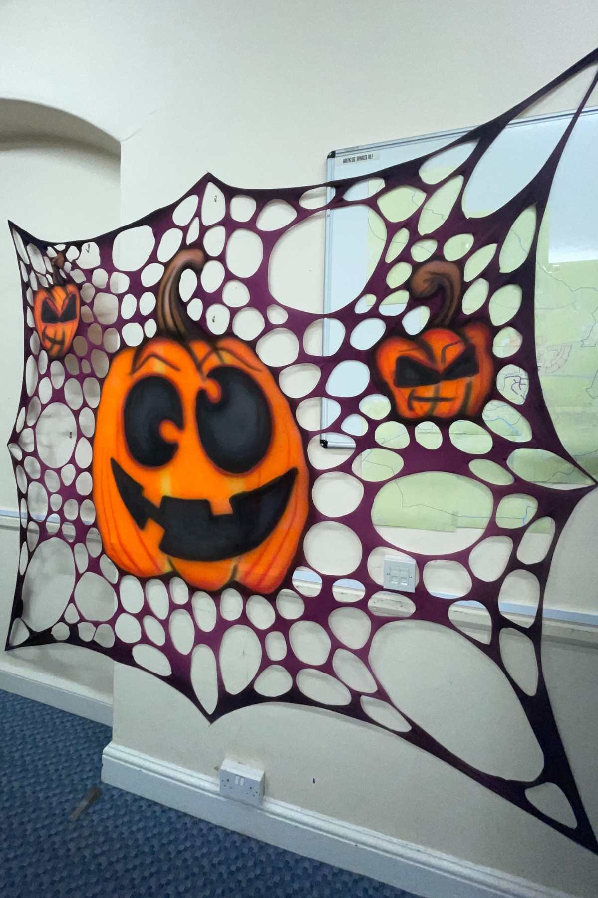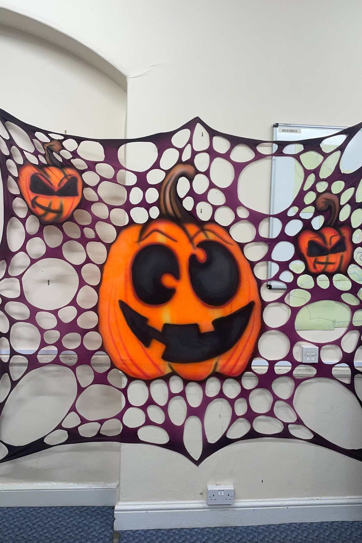 Create something spooky and fun this Halloween with our bespoke, made-to-order UV decorations! These playful cartoon pumpkins come alive when you stretch them across walls and ceilings, creating the perfect statement piece to bring out the kid (and kid-at-heart) in you! Enjoy a totally wicked, glowing Halloween!
