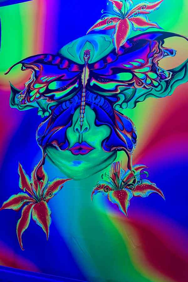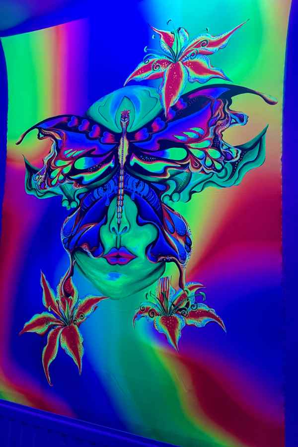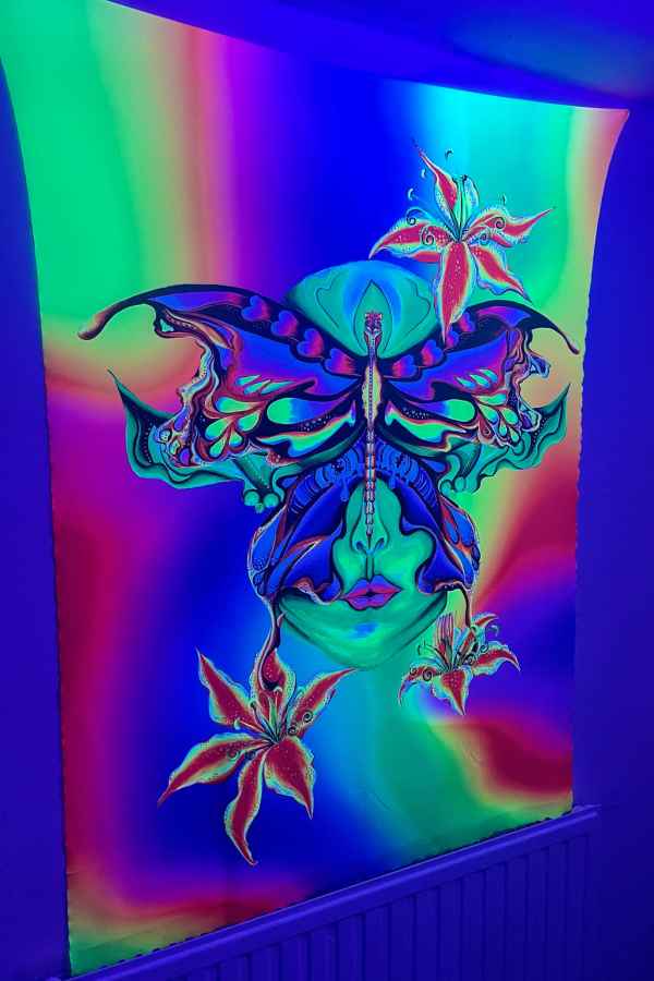 Transform your space with our mesmerizing UV Reactive Butterfly Elf Wall Hanging, a captivating piece of art that brings magic to life. This very design was originally a painting which you can view on the link below