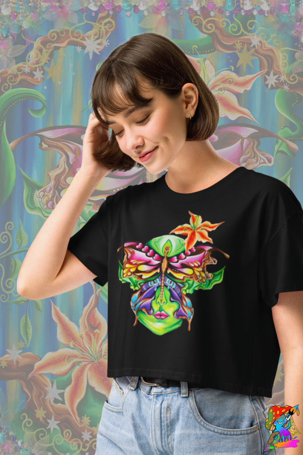 Womens Psychedelic Tree Spirit, Acid-Fairy Crop Top