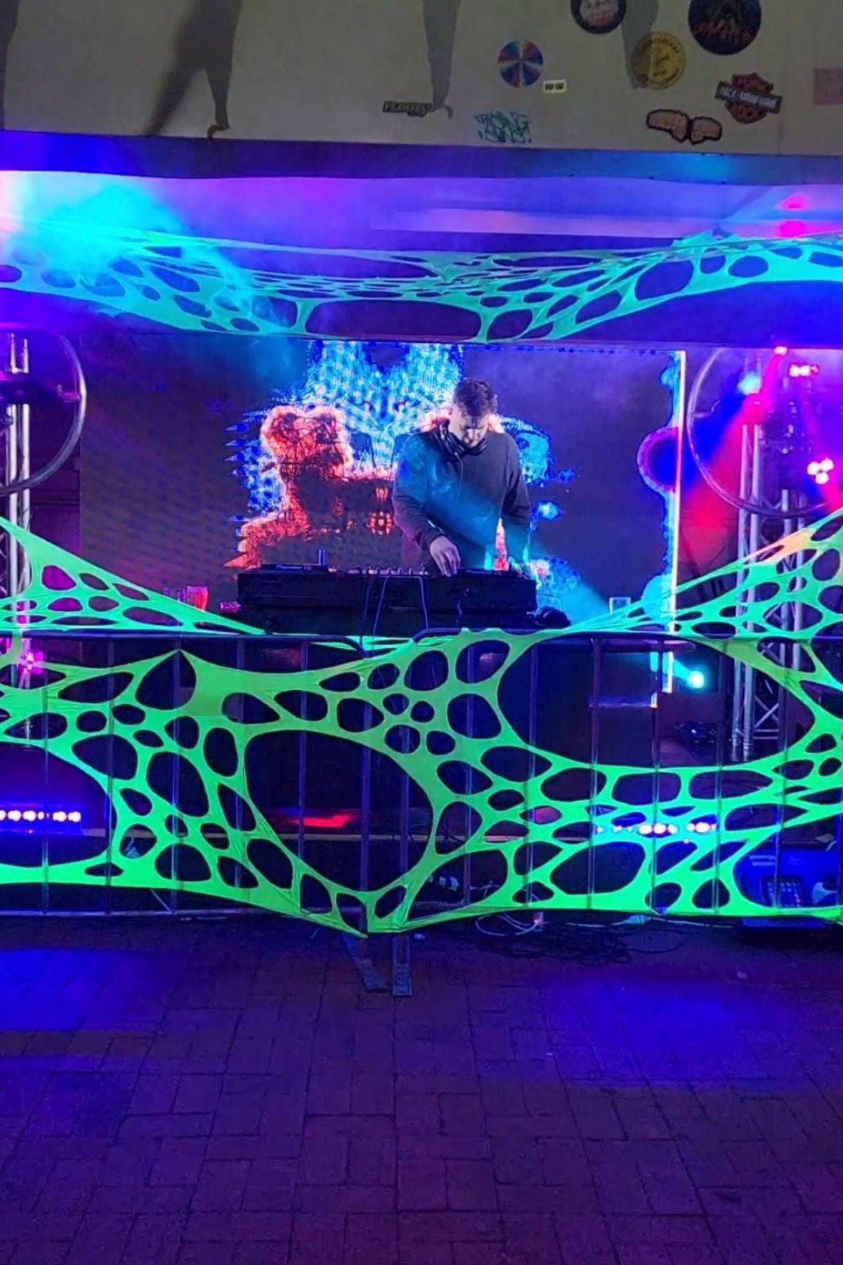 Transform your venue effortlessly and make your next event unforgettable with our all green UV-reactive party decor hire pack!