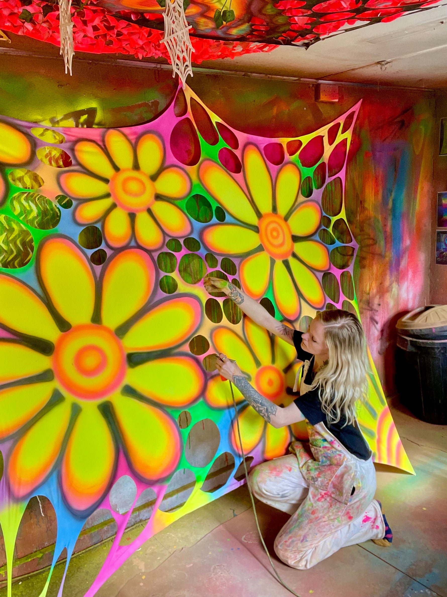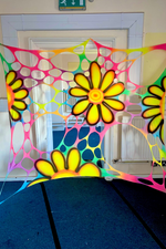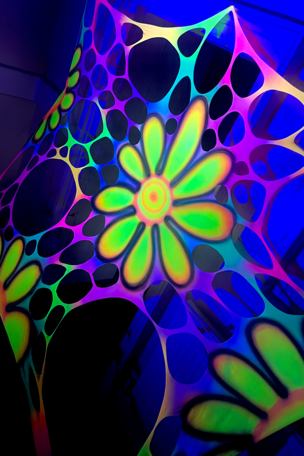 Transform your space into a mind-bending, UV wonderland with our handmade Psychedelic Rainbow Daisy Stretch Web! Designed and crafted by Cherise, every piece is infused with flair, creativity, and a trippy aesthetic that brings any party, festival, or event to life.