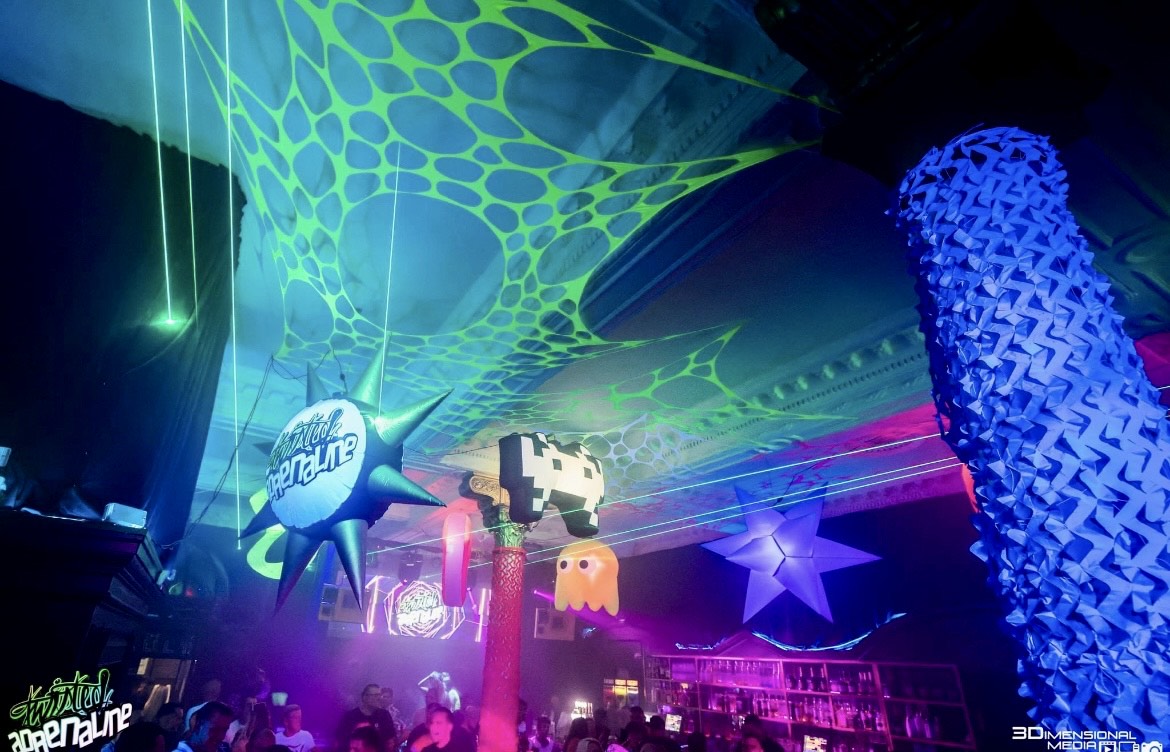 UV Reactive zebra print event decorations, psychedelic decorations