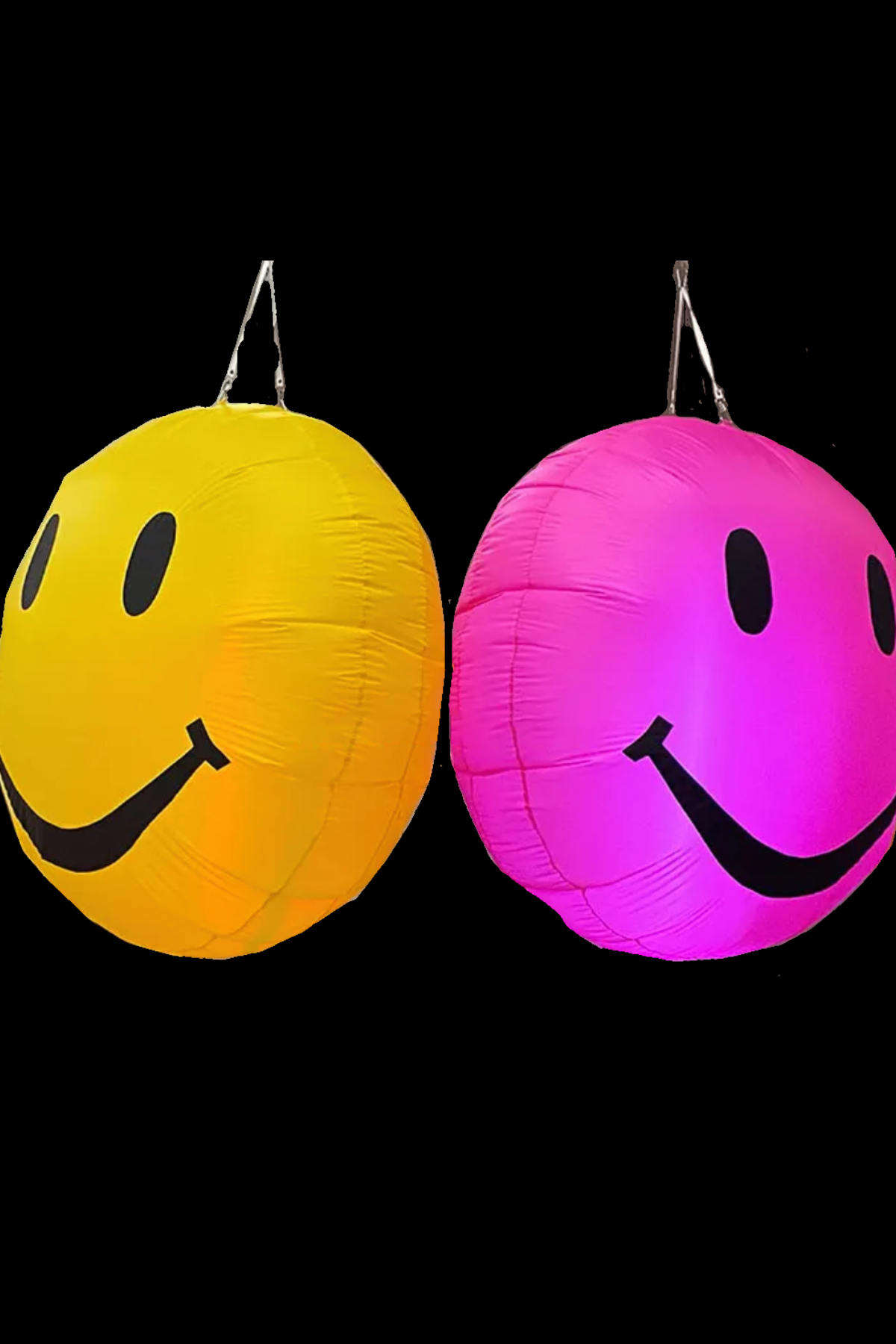 This playful duo of 1-metre LED inflatable happy face props is perfect for those curating nostalgic, acid rave or 90s-inspired event vibes. With vibrant colours (one in pink, one in yellow), these iconic smiley faces will light up your space — literally and figuratively.