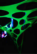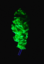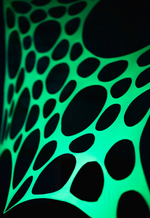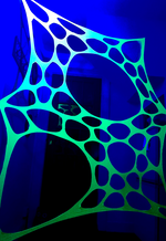 The webs are made using UV reactive fibres. Under UV or blacklight they glow brightly, creating that high impact fluorescent effect. In normal lighting they still look great, but UV lighting really brings them to life.