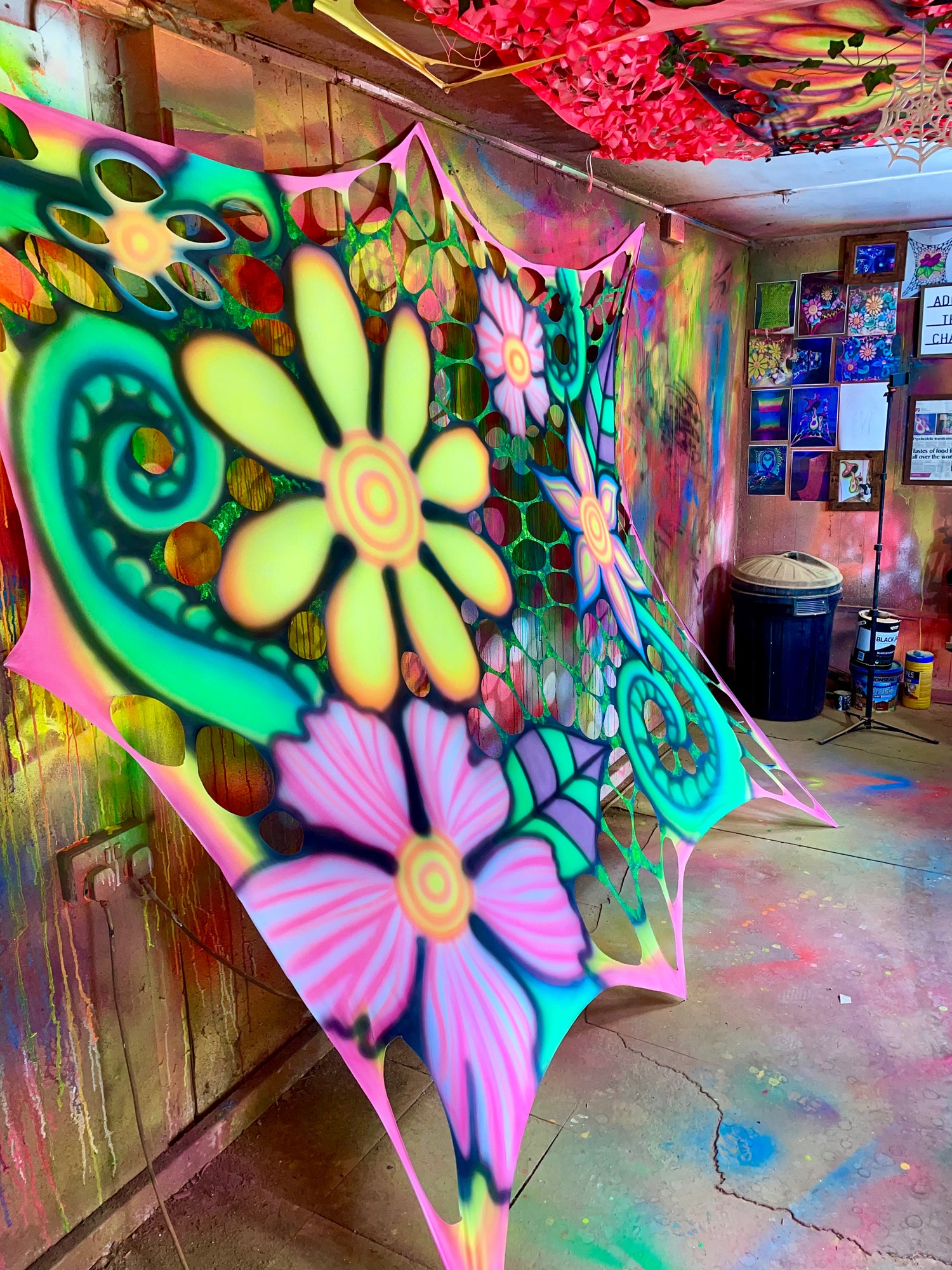 Each web is produced by hand using UV reactive materials chosen for brightness and consistency. Our process allows for organic shapes, flowing patterns and custom finishes that can’t be achieved through mass production.