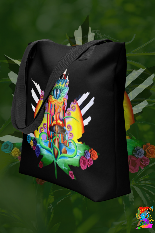 Psychedelic, Festival Hemp Leaf Tote Bag