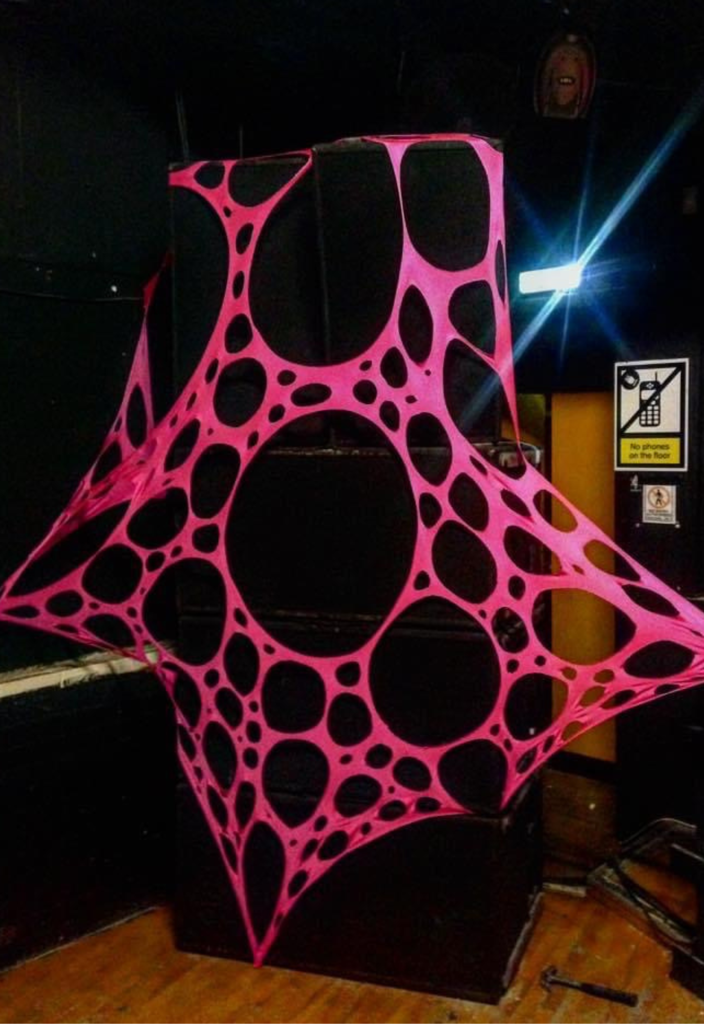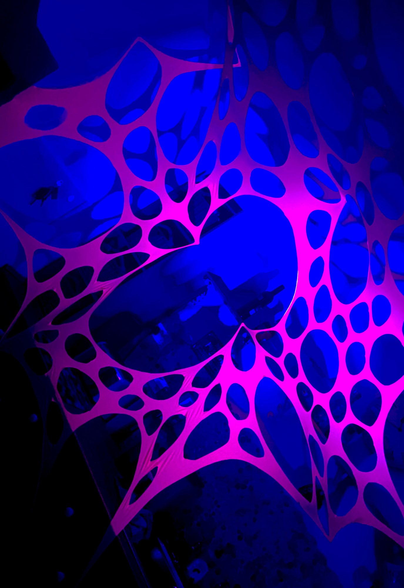 Made to order stretch webs built for parties, rave rooms and glowing social spaces.
